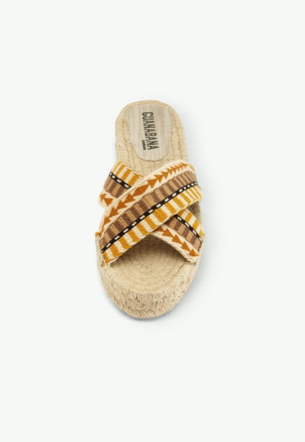 Summertime special jute espadrilles handmade in Spain. Featuring a cheering woven graphic design over the cross-over straps.