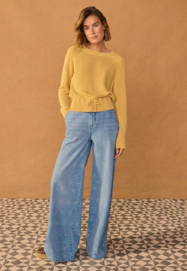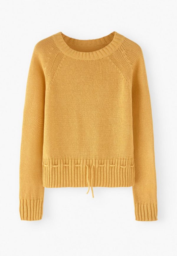 Riviera chic sweater in heavy-weight linen and organic cotton that feels soft, smooth and drapey. With a round neckline and full-length sleeves, the hem is knitted with a deep rib-stitch and a jaunty drawstring tie.