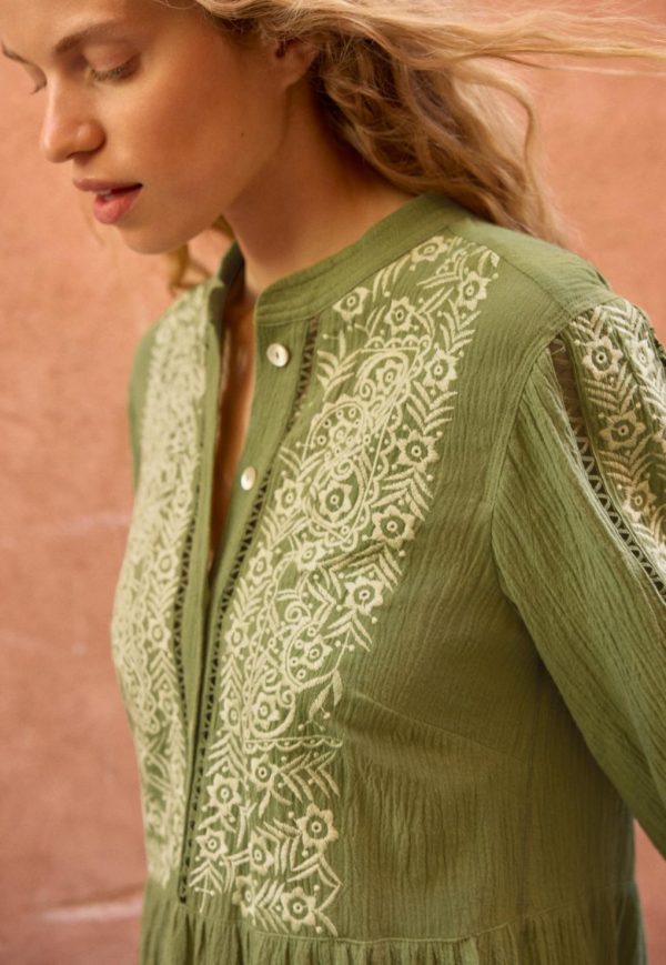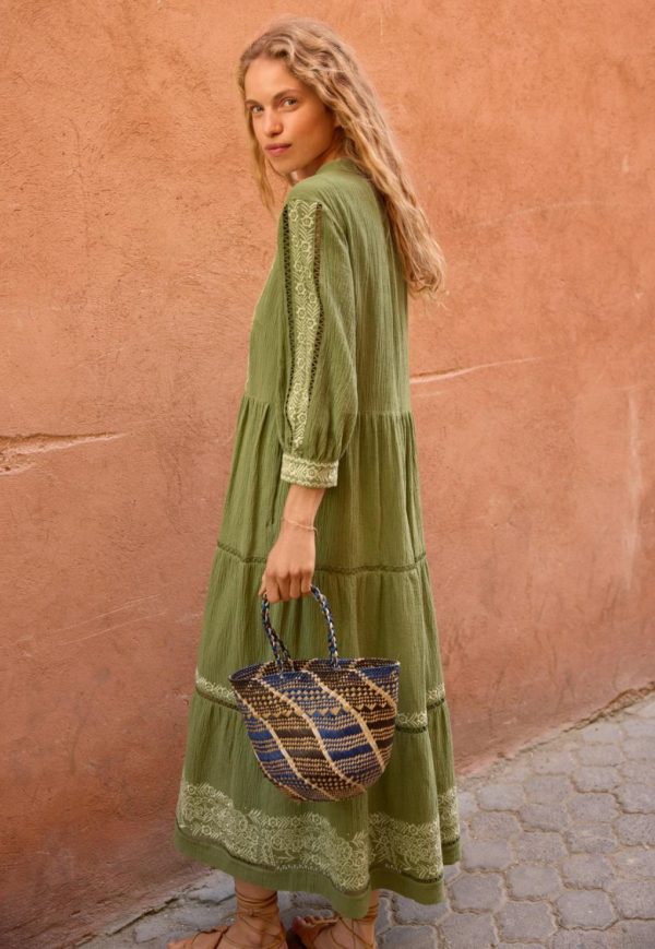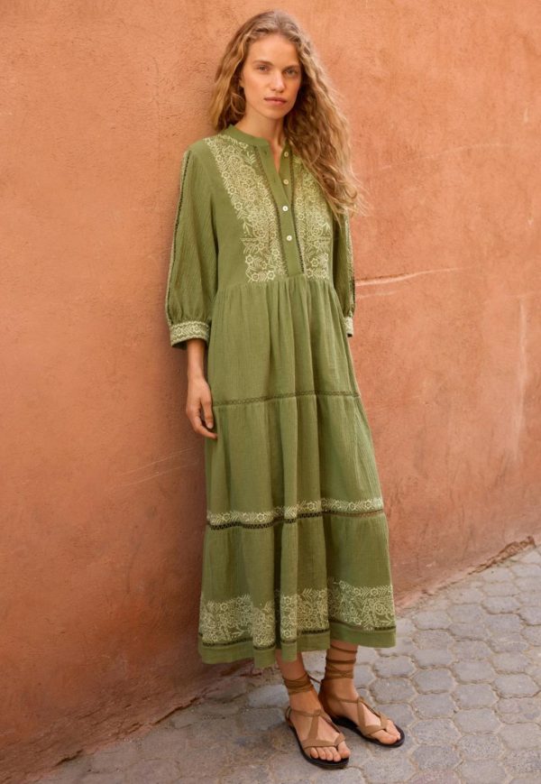 Women Embroidered Dress Leaf Green | Wrap London Dresses & Skirts
