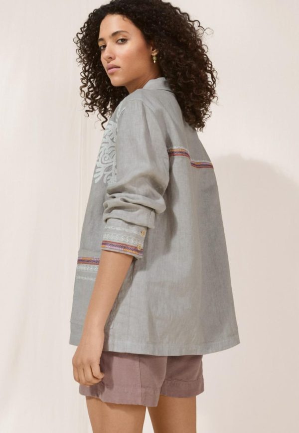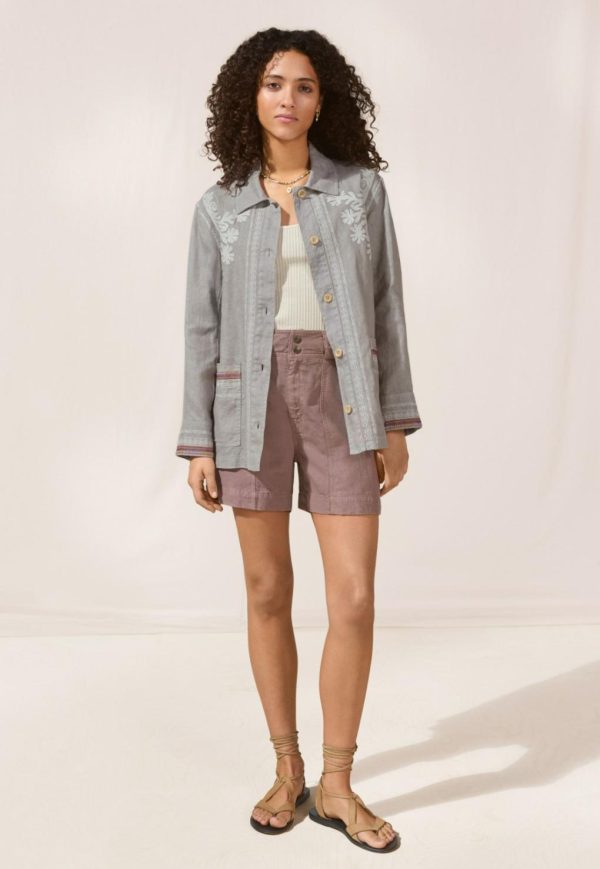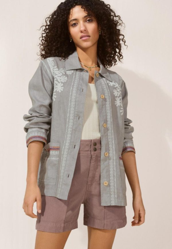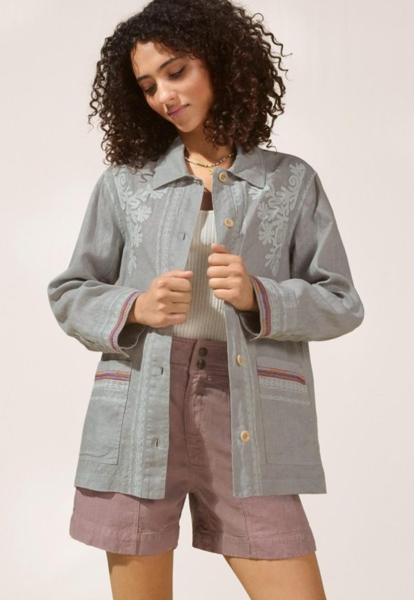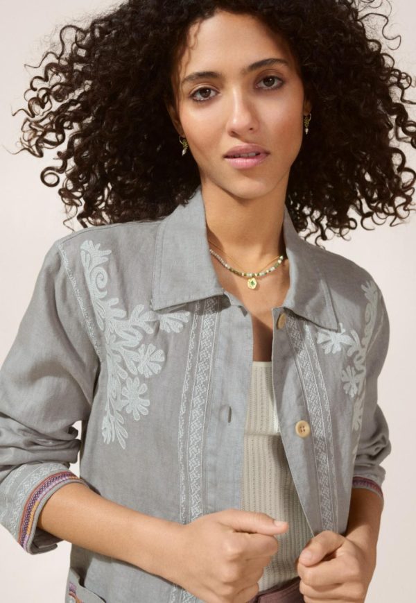 A fabulous relaxed fit jacket in lightweight linen featuring contrast embroidery details front and back. A stand-out piece to layer over a dress or denim, designed to catch the eye.