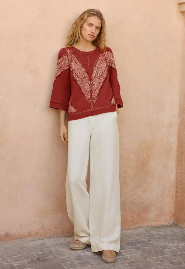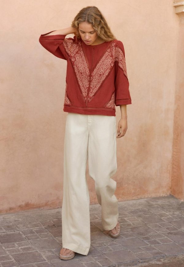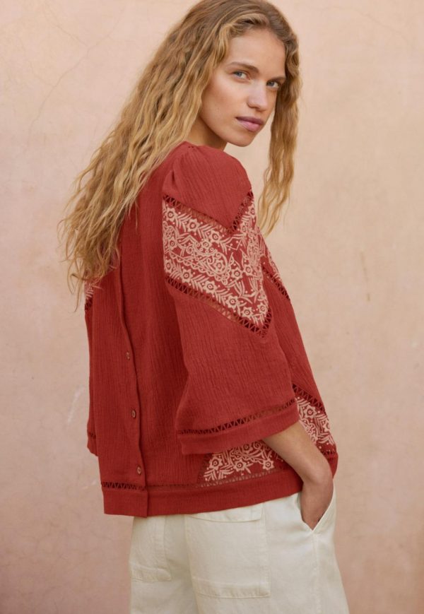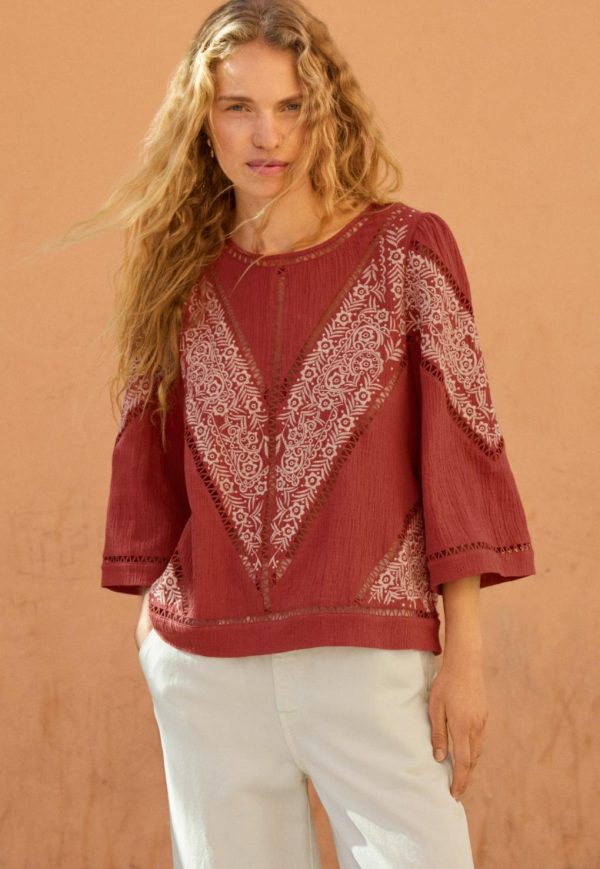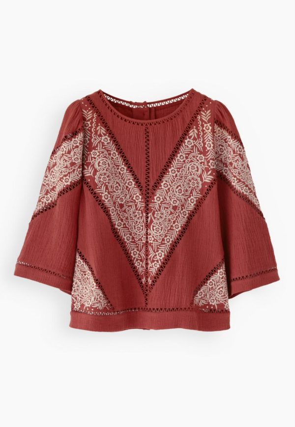 Women Embroidered Top Russet Red | Wrap London Shirts & Tops