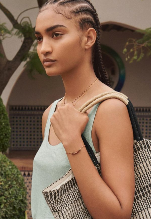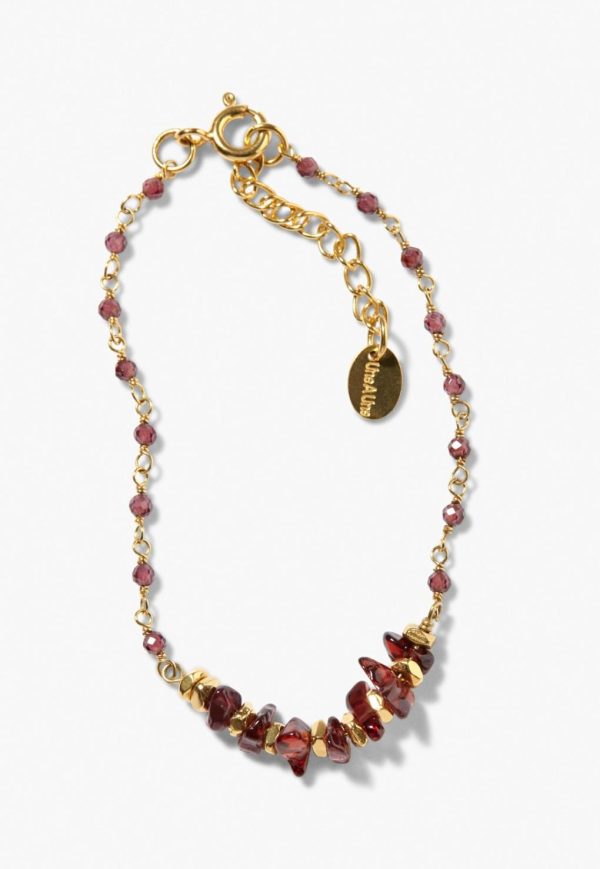 Mini brass beads gilded with fine 18-carat gold intersperse with organically-shaped garnet stones to create a beautiful bracelet. Wear with the matching necklace or enjoy it as a solo piece.