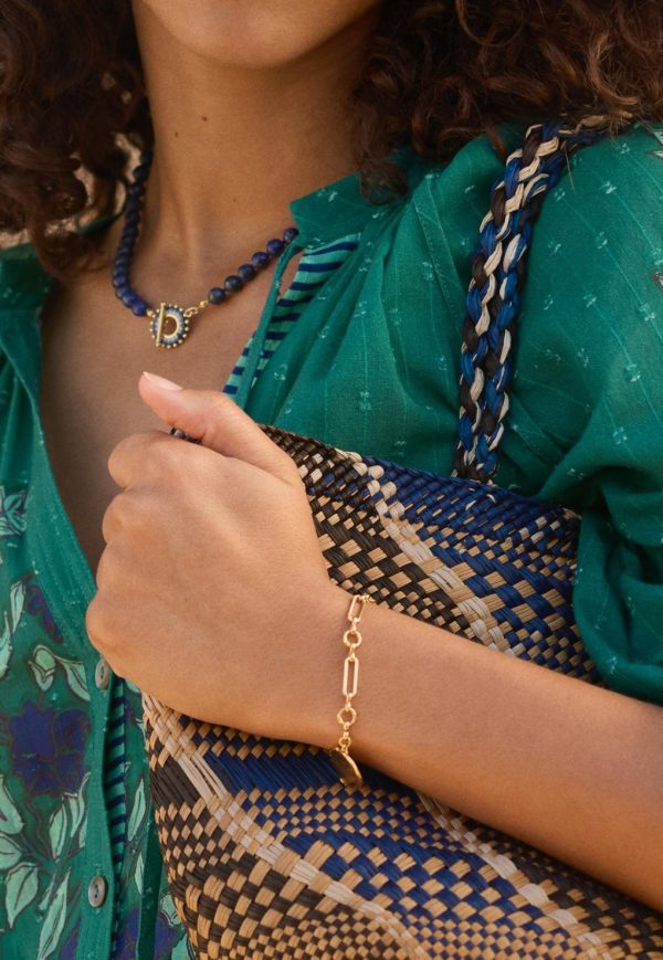 An elegant gold bracelet featuring a matte gold-plated brass design, showcasing an alternating link gold chain that adds texture and sophistication. The standout piece is the matte gold pendant, beautifully engraved and set with sparkling zircons for an eye-catching finish.