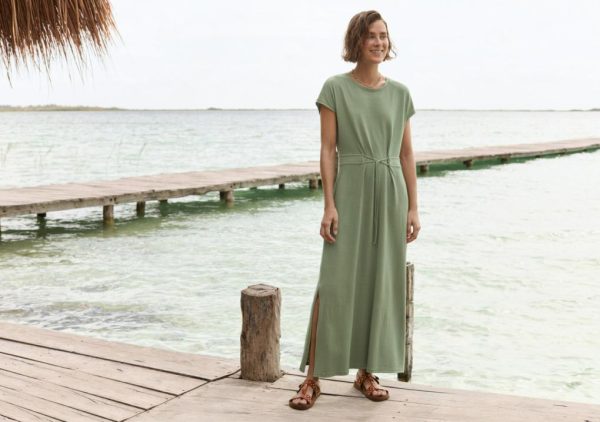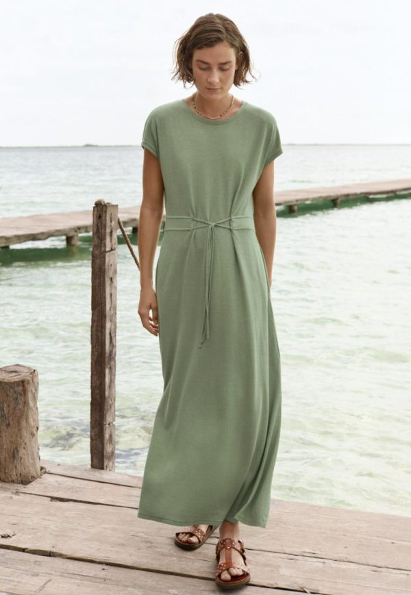 Super summer weight dress in cool hemp and organic cotton. Beach-to-bar styling with deep side-splits and a tie waistband that can be adjusted for a neater fit.
