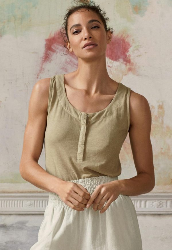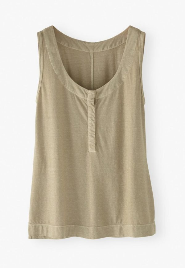 An essential summer vest in our organic cotton and hemp jersey that is lightweight and soft. In a range of pigment-dyed colours designed to work across the collection. Slim-fitting with a round neckline and little popper closures.
