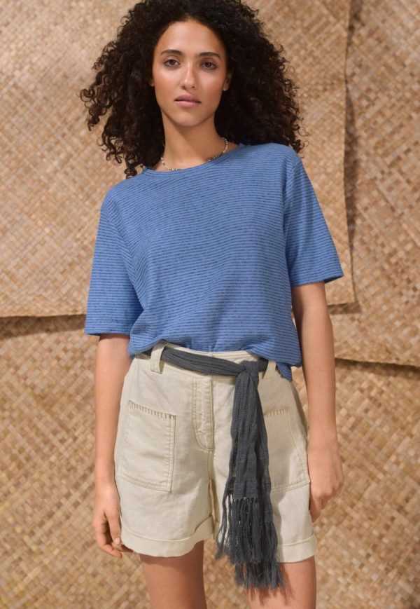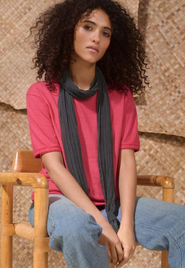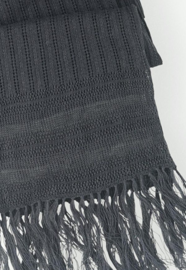 Add this slim striped long linen scarf to your outfit for an instant lift. Edged with a contrasting knit pattern and fine thread tassels, it’s a piece you’ll reach for time after time.