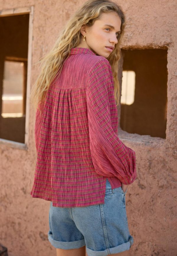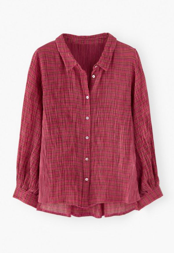 An off-duty blouse showcasing crisp checks in crinkle cotton which is tactile and softly textured. Designed for a relaxed fit, it’s slightly longer at the back with neat splits in the sides.