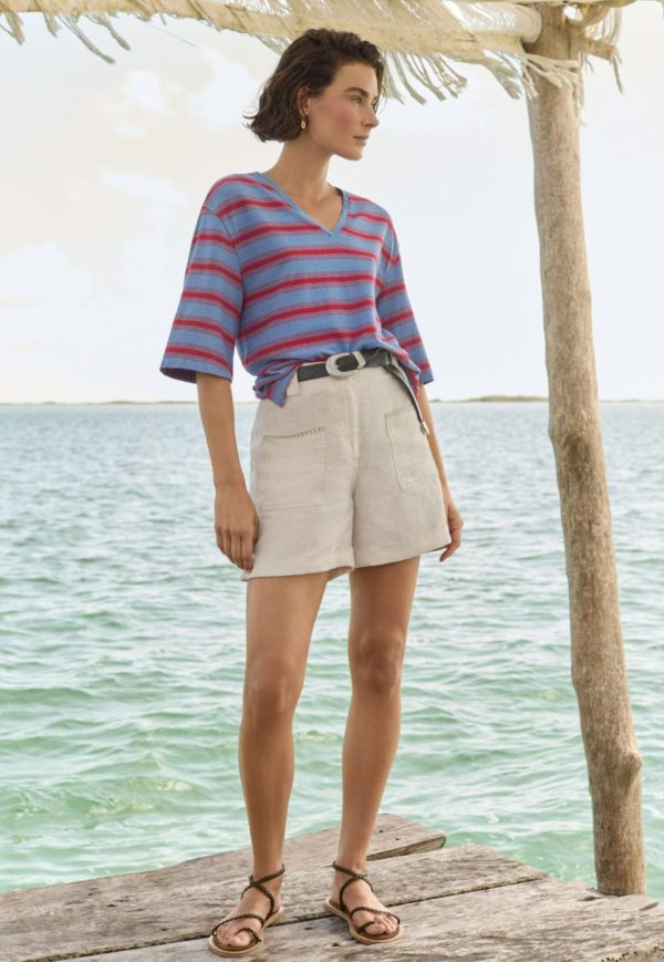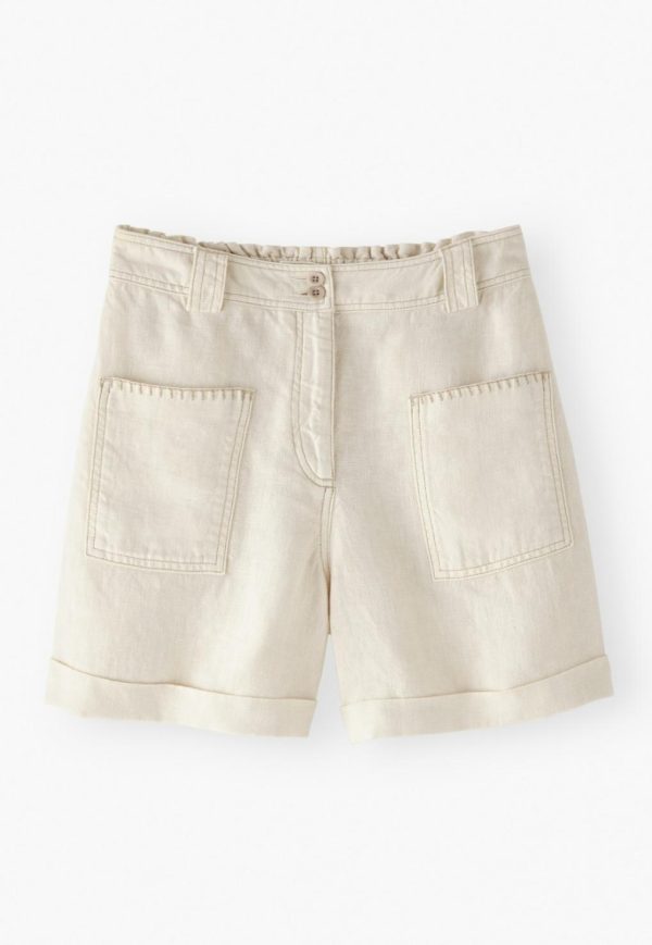 Essential summer shorts in garment-dyed linen. Overstitched in contrast thread for a subtle detail, they’re high-waisted and wide-legged and the elasticated back at the waist ensures a great fit.