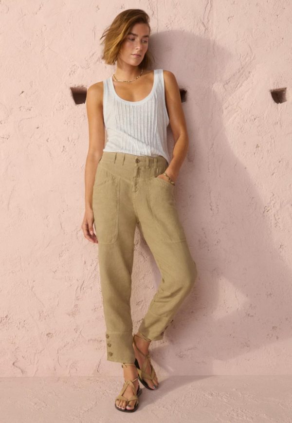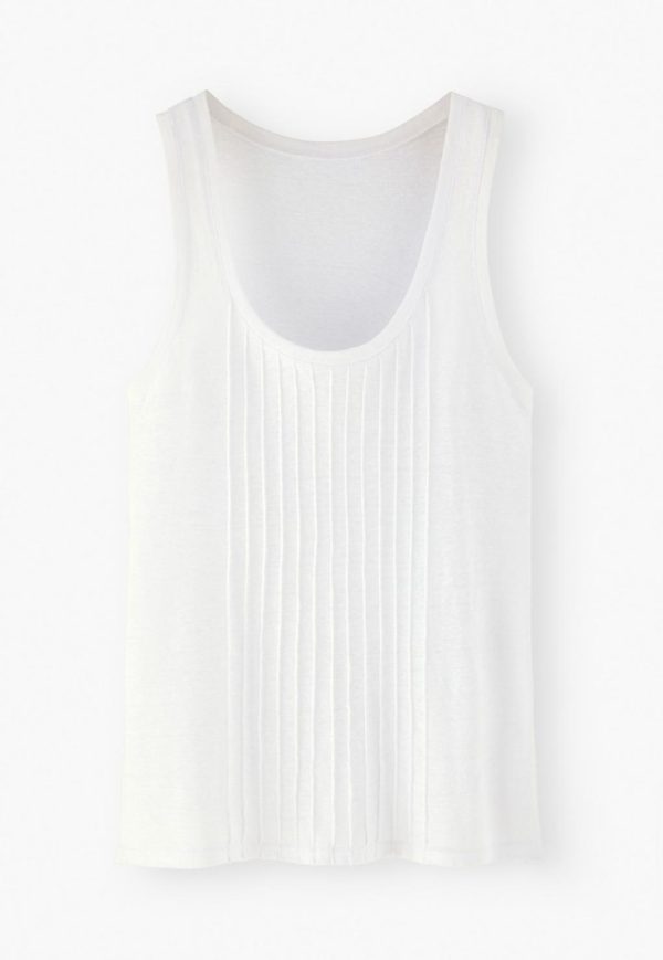 A swingy linen jersey vest with an easy loose fit, high racer-back and a pin-tucked panel at the front.
