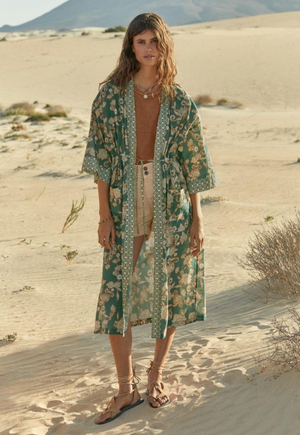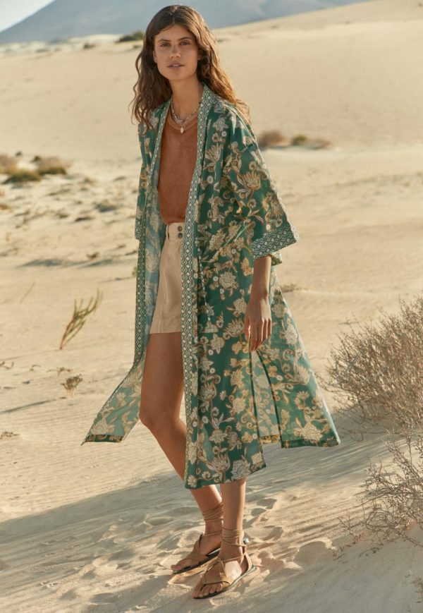 You can match this gorgeous long-line lightweight cotton kimono with the silk dress in the same exclusive print. Or you can wear it solo as a beach cover up, an evening coat or when relaxing at home. A wonderfully versatile piece to enjoy across the seasons.