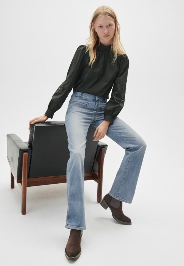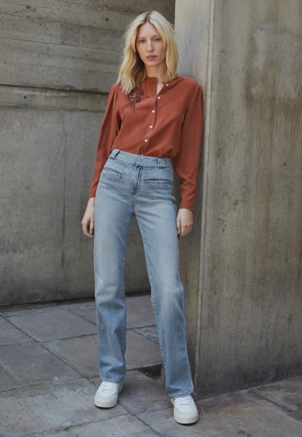 A fab pair of straight-leg jeans with some seventies styling cues including the cute front pockets and the wide belt-loops. Keep it on the low-down with trainers or rise high with stacked-heel boots.