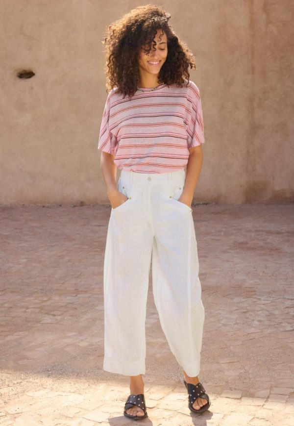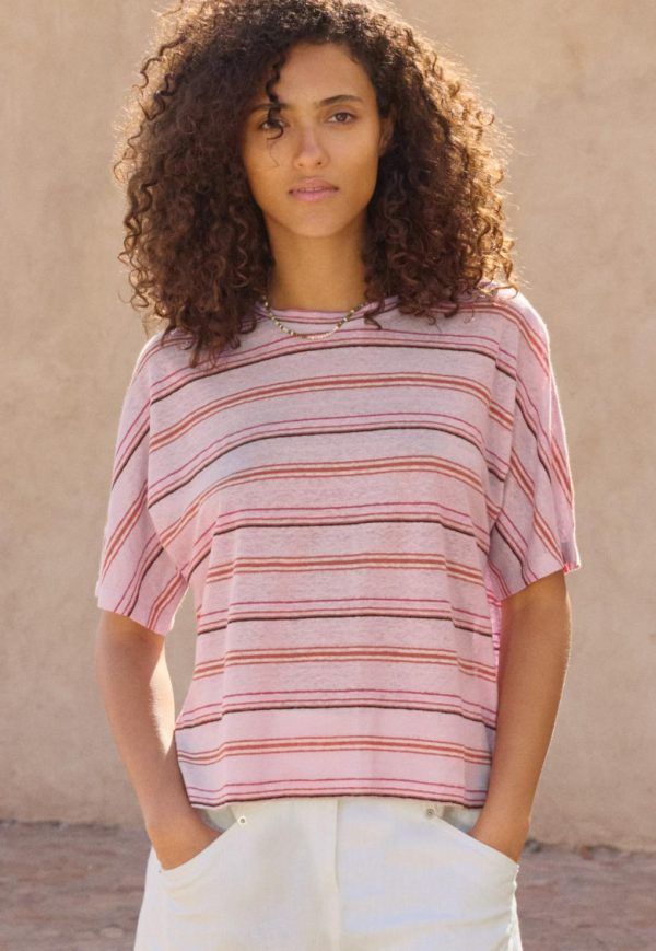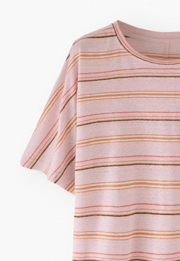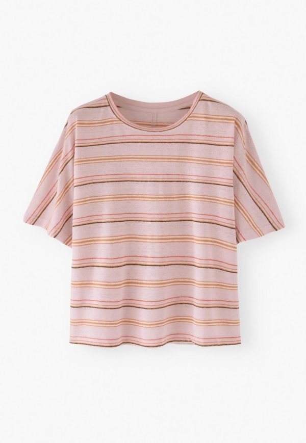 Women Stripe Boxy T-shirt Blossom Orange | Wrap London Jersey Tops