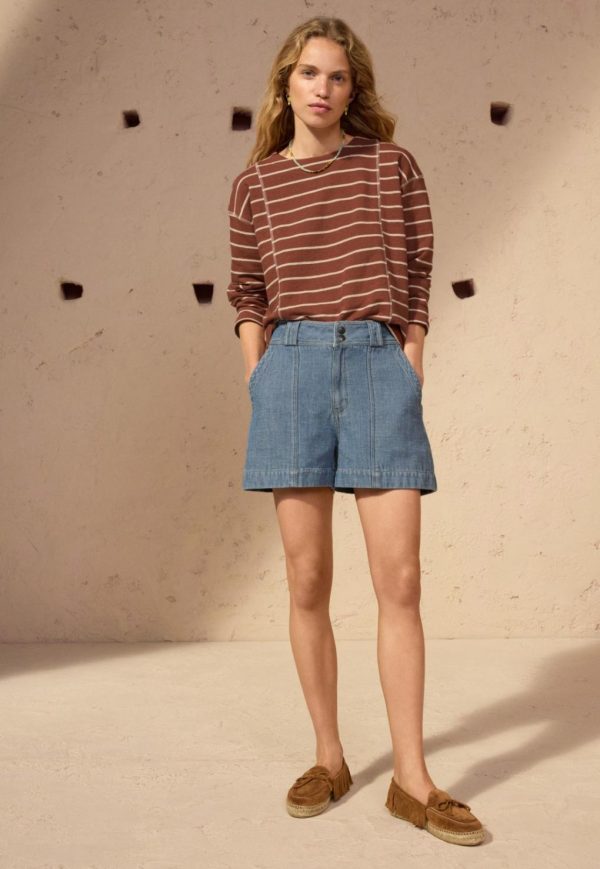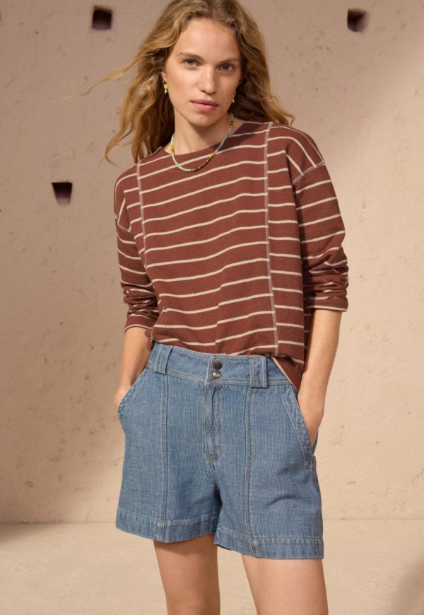 Women Striped Jersey Top Cinnamon | Wrap London Jersey Tops