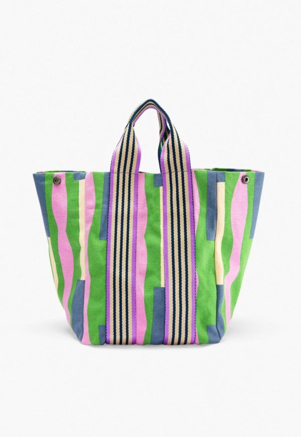 Women Striped Shopper Bag Green Lilac | Wrap London Accessories