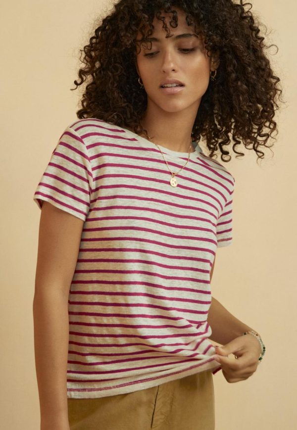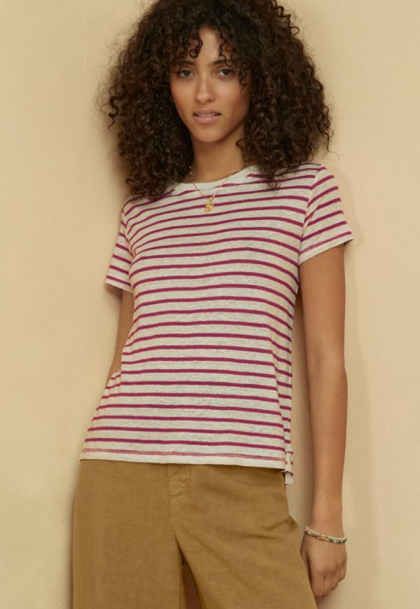 Soft summer-striped T-shirt in lightweight linen jersey that drapes beautifully and feels cool next to the skin.