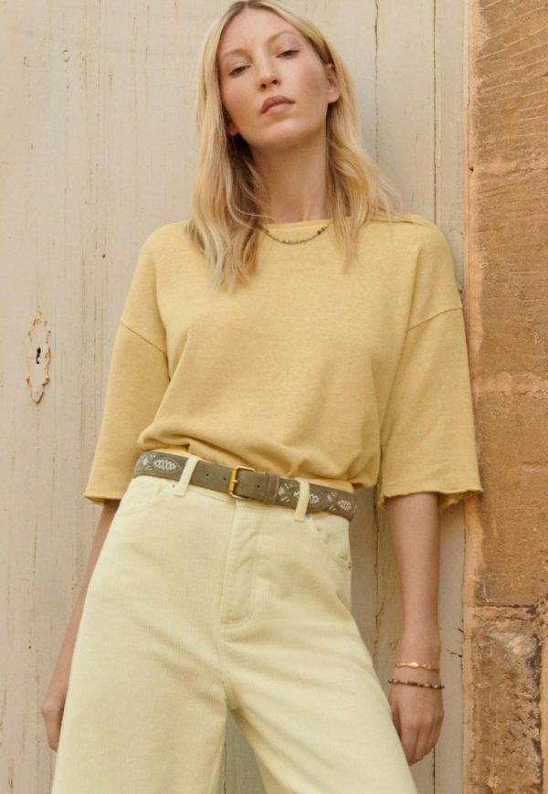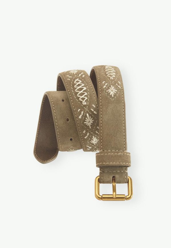 Treat your waist to a beautiful taupe leather belt with an eye-catching contrast stitch pattern over the suede exterior.