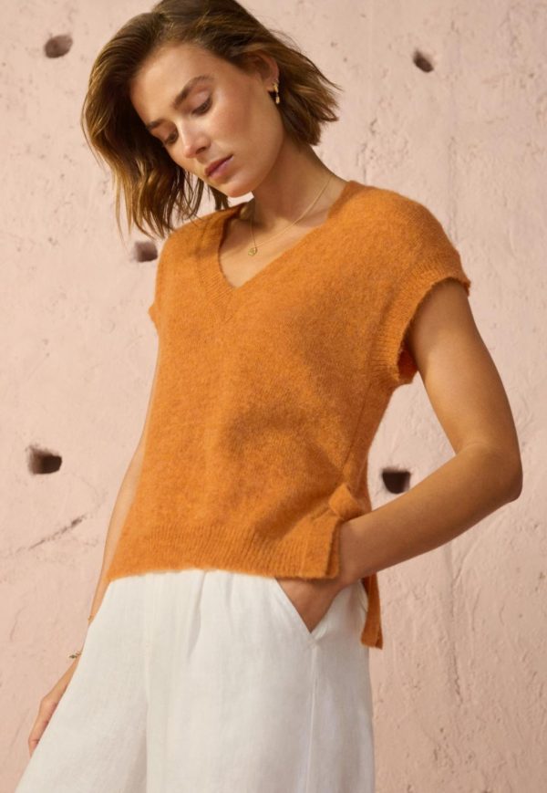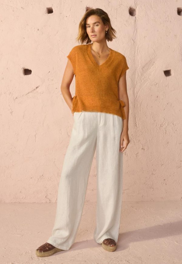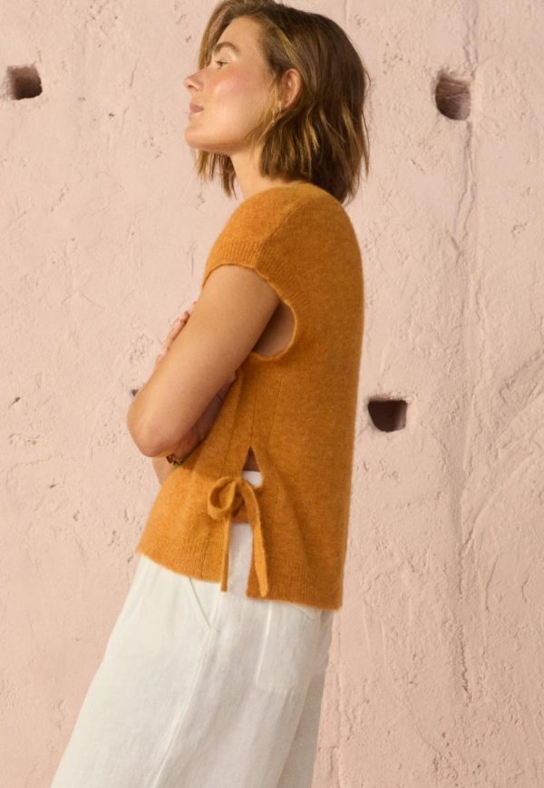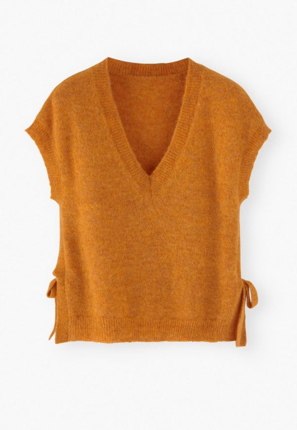 Perfect over your favourite shirt, add colour and warmth with this super-soft alpaca blend sweater. With a deep v-neckline and side-splits at the hem, closing with little tie-bows.