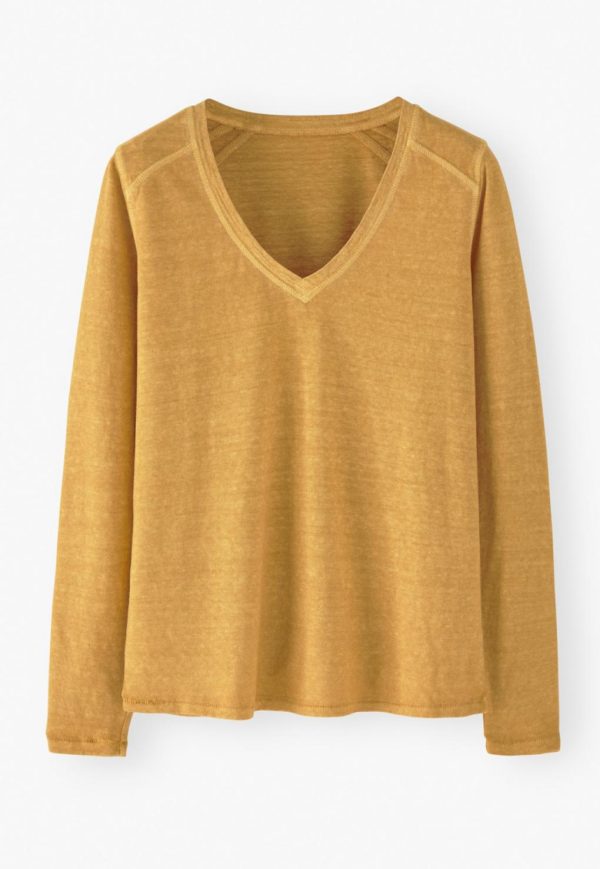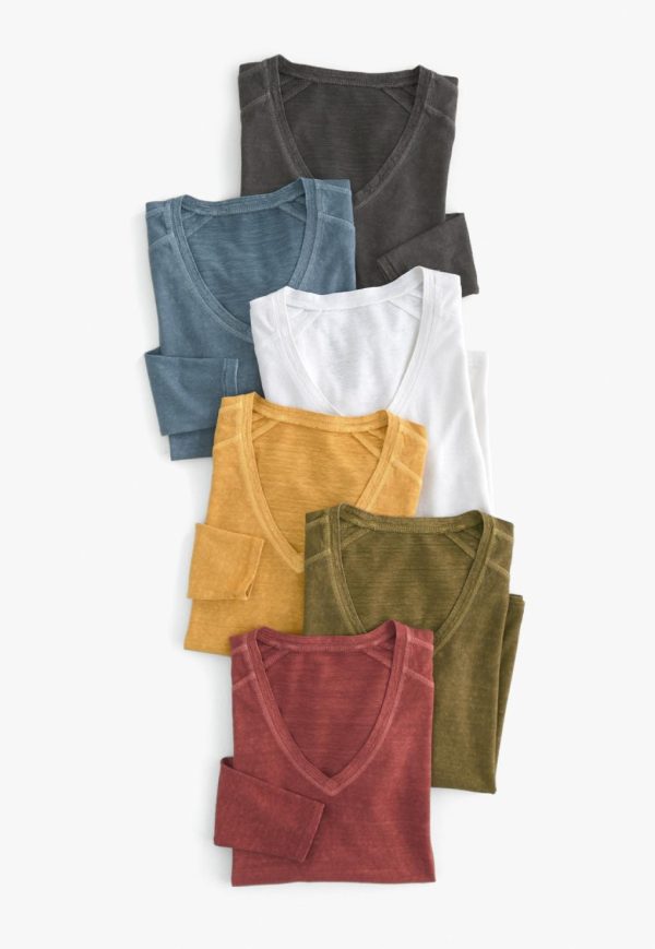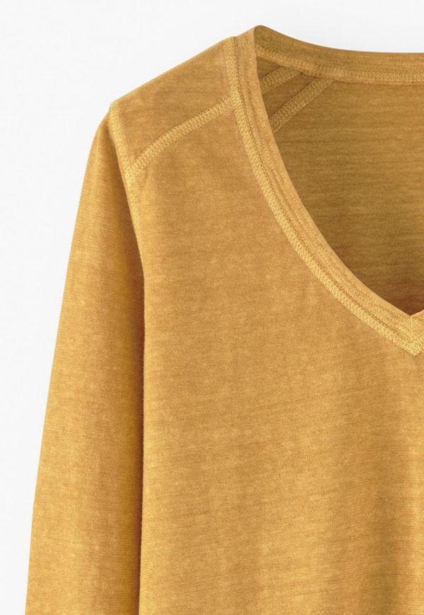 Time for a v-neck top that works as a layering piece and is super solo. Made from hemp and organic cotton jersey, and pigment dyed for a laundered, casual look.