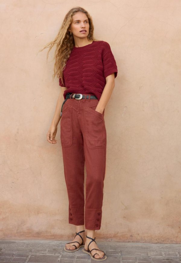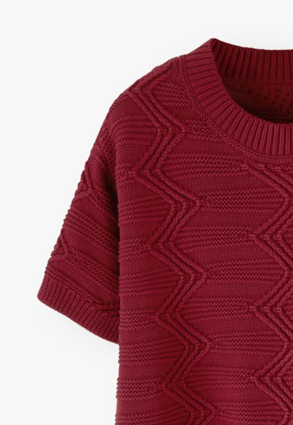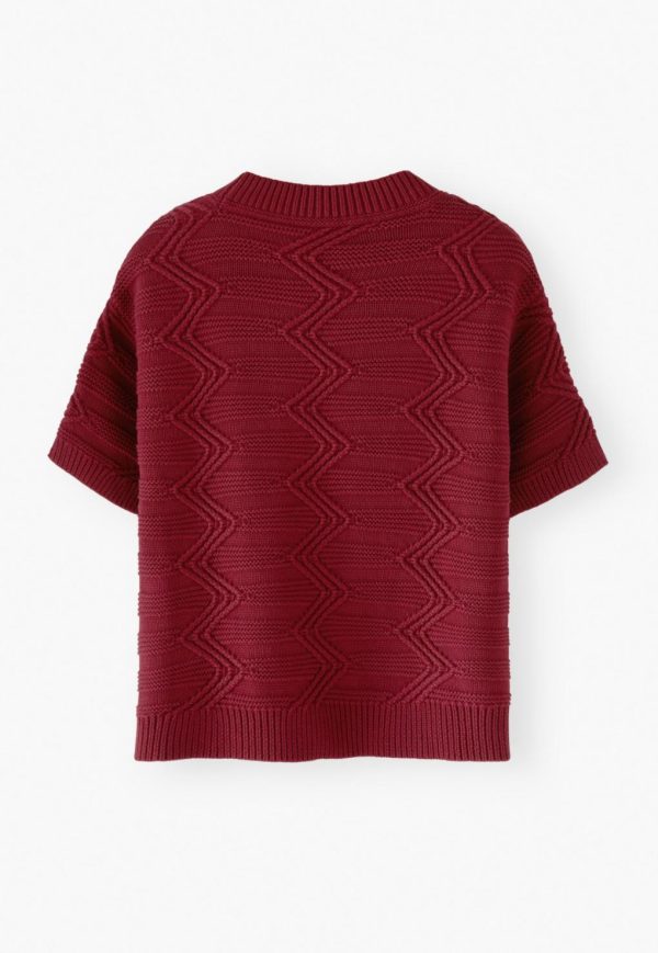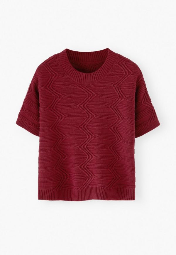 A dynamic zig-zag pattern has been knitted all-over this sweater in premium brushed cotton. With a round neckline, dropped shoulders and short sleeves, it’s a fabulous knit that’s neat and chic.